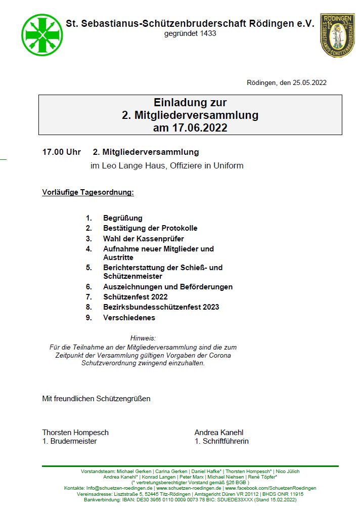 gekrönt. Wir freuen uns auf viele uniformierte Teilnehmer.