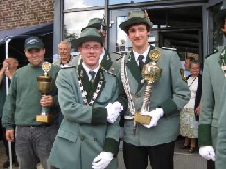 24.06.2011 Zweite Jahreshauptversammlung Der jüngste König von Rödingen Der jüngste König von Rödingen (Quelle: Jülicher Nachrichten Di, 28. Jun. 2011 ) Hompesch (23) trifft mit 16. Schuss. Clemens das Schulterband verliehen. Rödingen. „Der jüngste König von Rödingen“, Thorsten Hompesch (23), führt im nächsten Regentenjahr die St. Sebastianus Schützenbruderschaft Rödingen an. Als einziger Bewerber um die Königswürde traf er den Vogel am Fronleichnamstag mit dem 16. Schuss. Prinz ist sein jüngerer Bruder Stephan Hompesch, der Schülerprinz heißt Kevin Abels. Doch vor der Feier des gut besuchten Familientages stand die Fronleichnamsprozession als „fester Bestandteil im Schützenwesen auf dem Programm“, wie Brudermeister Gebhard Gerken bei der Jahreshauptversammlung im Leo-Lange-Haus betonte. Nach vier Jahren im Amt kandidierte der „Superpraktiker“ Dieter Breuer nicht mehr als Schriftführer, seine Nachfolgerin heißt Andrea Bongartz. Sie ist das erste weibliche Vorstandsmitglied der Schützenbruderschaft. Zu neuen Kassenprüfern wurden Volker Lenzen, Tobias Mielke und Günter Weber gewählt. Höhepunkt der Versammlung waren Auszeichnungen und Beförderungen. Gast war Diözesanbrudermeister Wolfgang Genenger, „Chef von 65. 000 Schützen im Diözesanverband Aachen“, der dem 70-jährigen Hans-Gert Clemens das Schulterband zum St. Sebastianus-Ehrenkreuz verlieh. Der Geehrte leistete 25 Jahre Vorstandsarbeit, davon 22 Jahre als erster Kassierer, und gilt als „Aushängeschild der Bruderschaft“. Obwohl er eine solch hohe Auszeichnung im Vorfeld ausdrücklich nicht gewünscht hatte, zeigte er sich sehr gerührt. Ferner wurde Konstantin Maaßen aufgrund seiner Verdienste zum General befördert, Hubert Sieben zum Oberstleutnant und Daniel Dohle zum Leutnant. Die Bruderschaft verzeichnet sechs Austritte, konnte aber auch zwei neue Mitglieder begrüßen, davon eines aus Düren-Lendersdorf. Die erste Mannschaft darf sich über den Aufstieg in die höchstmögliche Diözesanklasse freuen. Als Tabellenfünfter in der 2. Bereichsklasse Aachen Gruppe A konnte sich die 2. Mannschaft behaupten, auf dem sechsten Tabellenplatz dieser Klasse die 4. Mannschaft (beide Freihand). Weil für die Schüler-Mannschaft nicht genügend Jugendliche zur Verfügung stehen, werden in der Saison 2010/11 keine Rundenwettkämpfe geschossen. Die 5. Mannschaft (aufgelegt) konnte sich auf dem ersten Platz in der 1. Bezirksklasse Jülich behaupten. Somit ist kein Aufstieg mehr möglich. Die 6. Mannschaft belegte den 2. Platz in der 3. Bezirksklasse Jülich und ist einer beiden Aufsteiger in zweite Bezirksklasse. Ein Vergleichswettkampf zwischen beiden Teams wird wieder ins Auge gefasst. Die Teilnahme der Bruderschaft bei Pokalturnieren war äußerst erfolgreich. Zahlreiche Dankesworte wurden zudem für die große Beteiligung an den Diözesanschützentagen gesprochen. (ptj) Ausgezeichnete Schützen bei Meisterschaft Vereinsmeisterschaft, Jungschützen weiblich: Carina Gerken, 112 Ringe; männlich: 1. Michael Hirsch (132), 2. Christian Gerken (121), 3. Tobias Mielke (118). Damenklasse 1: Andrea Bongartz (91). Damenklasse 2: Renate Hirsch (96), Claudia Gerken (95), Rita Abels (86). Schützenklasse: Michael Gerken (143), 2. Thorsten Hompesch (137), 3. Andrea Bongartz (132). Altersklasse: 1. Herbert Weber (130), 2. Hans Hompesch (129), 3. Manfred Mielke (123). Offene Klasse aufgelegt: 1. Leo Wolff (148), 2. Dieter Bongartz (147), 3. Michael Niehsen (147). Senioren 1: 1. Konrad Langen (100), 2. Dieter Breuer (100). 3. Konstantin Maaßen (100). Senioren 2: 1. Heinz Breuer (97), 2. Fred Bongartz (92). Für dreimalige Teilnahme in Folge an der Meisterschaft ohne Platzierung unter den ersten Drei erhielten Hubert Sieben und Martin Marx die grüne Schießschnur sowie Peter Marx und Gebhard Gerken die grüne Eichel. (ptj).
