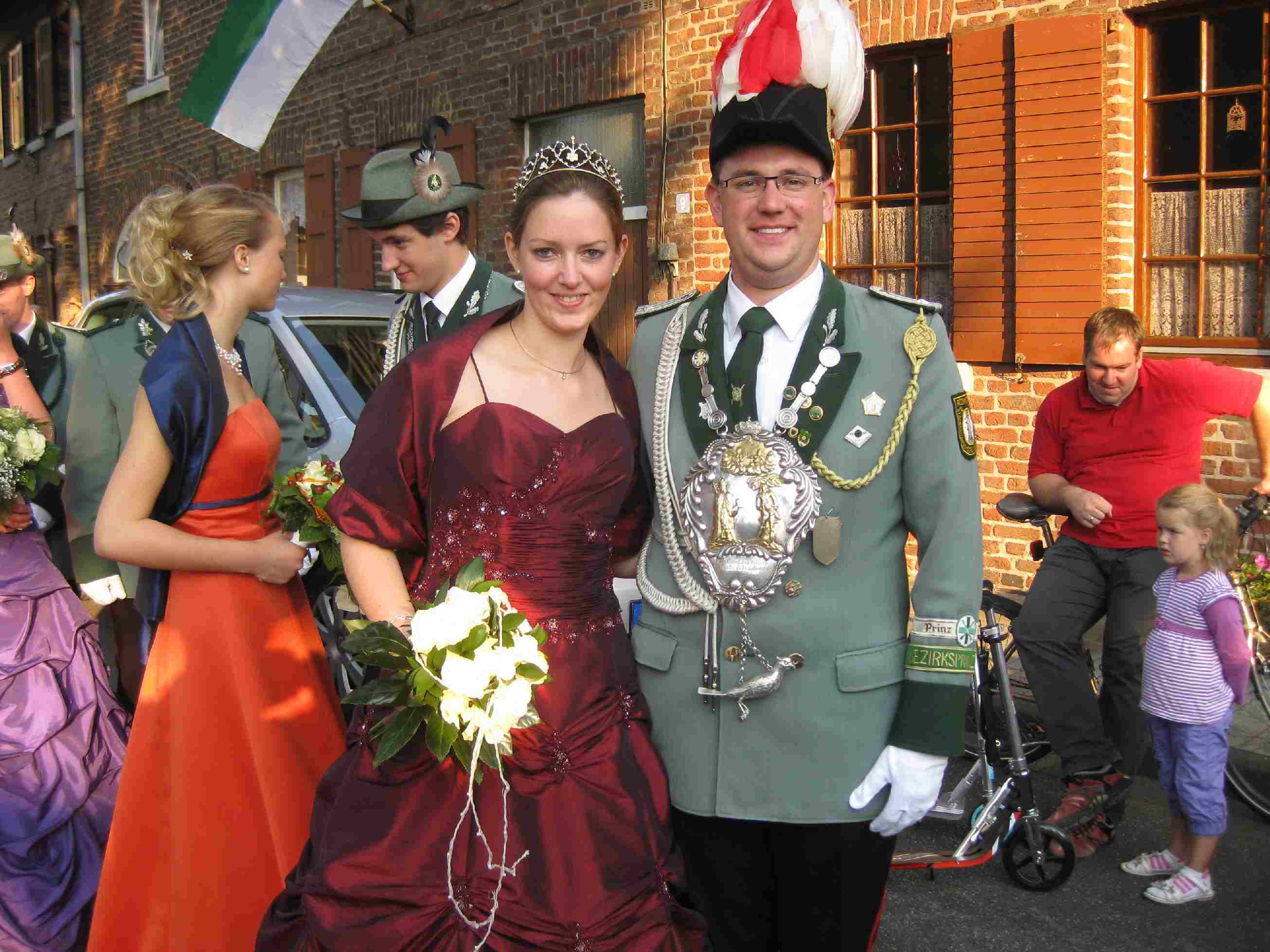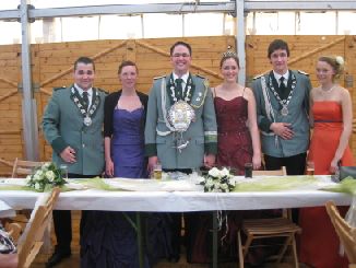 15. bis 18. Juli 2011 Schützenfest Eine Bruderschaft im Wandel: Tradition kombiniert mit modernen Akzenten St. Sebastianus Schützenbruderschaft Rödingen feierte Ihr diesjähriges Schützenfest Nach Wochen intensiver Vorbereitungen wurde das Schützenfest als Höhepunkt des Jahres gefeiert. Im Mittelpunkt des Geschehens standen die wohl jüngsten Majestäten des Bestehens: König Thorsten Hompesch mit seiner Königin Christina Strauch, Prinz Stephan Hompesch in Begleitung von Eva Dohmen sowie Schülerprinz Kevin Abels begleitet von Vanessa Winkels. Alle Drei wurden im Rahmen der Krönungsmesse von Präses und Pfarrer Dieter Telerac offiziell in Ihr Amt eingeführt. Im Anschluss an die Krönungsmesse und der traditionellen Gefallenenehrung zogen die frisch gekrönten Majestäten begleitet von einem farbenprächtigen Gefolge ins Festzelt, um gemeinsam mit Freunden, Verwandten und Bekannten den Königsball zu feiern. Die Jugend- und Jung-Schützen haben sich als Organisationsteam zusammen gefunden, um neuen Schwung ins Schützenfest zu bringen. Das Highlight für die jungen Erwachsen aus nah und fern wurde als "Cocktail-Party " am Samstag geplant und wurde ein Erfolg: Volles Zelt und Stimmung pur. Fetzige Musik, fruchtige Cocktails und bunte Knicklichtern fürs handgelenk sorgten für gute Stimmung bis spät in die Nacht hinein. Ob das „Fliegerlied“, Micky Krauses „ich bin Solo“ oder „Tulpen aus Amsterdam“, die Stimmungsband „Flamingoboys“ hatten für jeden Musikwunsch etwas im Repertoire. Der Sonntag startete mit dem Abholen der Majestäten, der Parade bei Möbel Schmid und dem anschließendem Frühschoppen mit Siegerehrung des Ortswanderpokal- und des Hans-Weber-Gedächtnis-Schießens sowie der Ehrung von Jubilaren und „Vorjahres-Majestäten“. Gegen 18.00 Uhr setzte sich unser Großer Festumzug in Bewegung. Gemeinsam mit den zahlreichen Ortsvereinen, den befreundeten Bruderschaften, den Ehrengästen und den vier Musikcorps zogen die Schützen durch Rödingen und Höllen. Den Abschluss des Festzuges bildete die große Parade vor „Eis Willi“, wo leider schon lange keine Eisdiele mehr existiert, aber der Straßenzug immer noch so bezeichnet wird. Am Montag endete das Schützenfest traditionell auf dem Schießstand mit Frühschoppen und Preisvogelschießen , bei dem ebenfalls die Gewinner der diesjährigen Verlosung ermittelt wurden. Bilder und Videos des diesjährigen Schützenfestes finden Sie auf der Homepage www.schuetzen-roedingen.de oder auf Facebook.